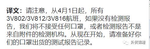 4月1日起,開(kāi)始海關(guān)也將會(huì)嚴(yán)查!空海運(yùn)等需要正式報(bào)關(guān)的防疫物品,都要送檢,送檢達(dá)到國(guó)家標(biāo)準(zhǔn)才能出口。