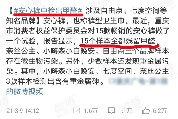 對(duì)于此次風(fēng)波,衛(wèi)生用品協(xié)會(huì)也出面為以上品牌“伸冤”,并給出了具體說明,強(qiáng)而有力地回?fù)袅?ldquo;標(biāo)題黨”。