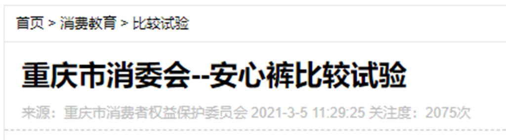 經(jīng)過深入了解,發(fā)現(xiàn)重慶市消費(fèi)者權(quán)益保護(hù)委員會(huì)的確曾經(jīng)發(fā)布過關(guān)于安心褲的檢驗(yàn)結(jié)果,此次對(duì)目前市場上比較暢銷的15款安心褲開展了比較試驗(yàn),主要對(duì)安心褲的衛(wèi)生性能、安全性能、功能性指標(biāo)、舒適性指標(biāo)等進(jìn)行測試。