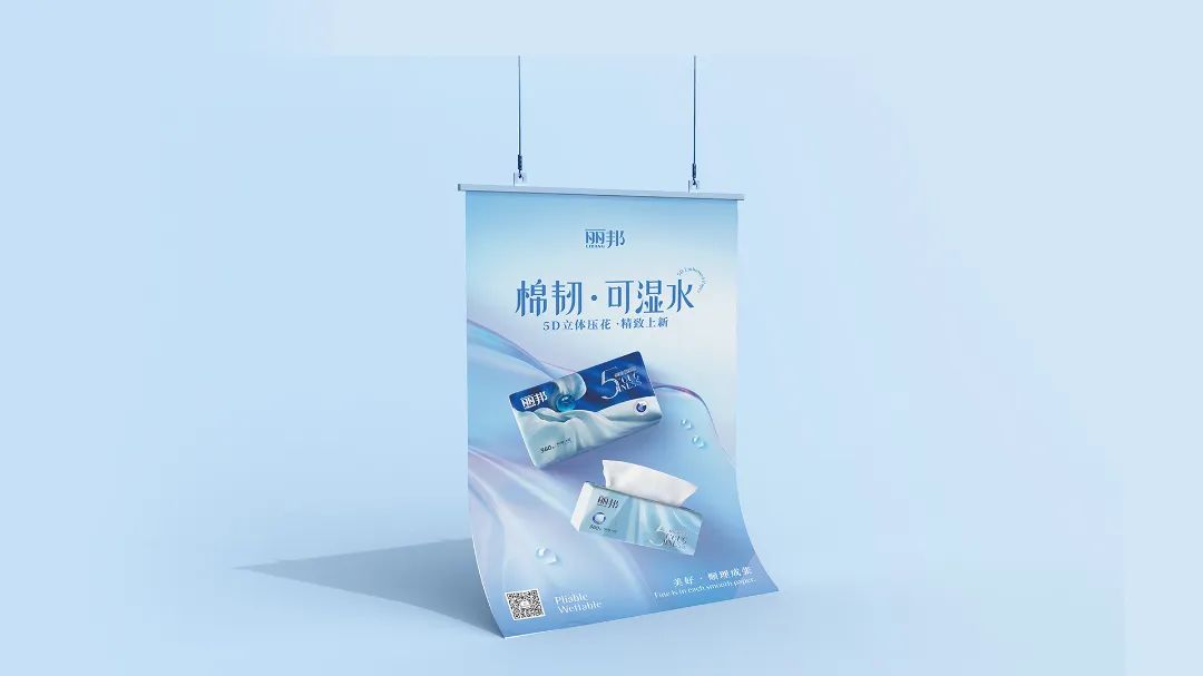 棉韌·可濕水系列攜5D立體壓花精致上新,海報(bào)購(gòu)物袋堆頭展示架等終端物料一體配套,直指產(chǎn)品核心訴求。