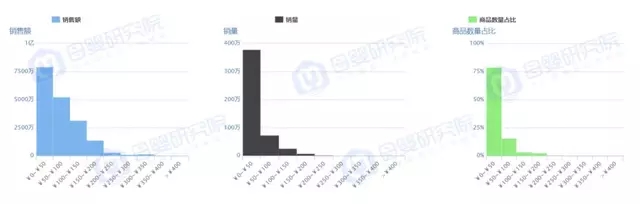 另外,我們可以看到,寶寶零食在淘系平臺上的銷售占比在逐年減少,據(jù)母嬰研究院數(shù)據(jù)顯示,就目前來看,寶寶零食仍處于起步階段,從銷售價(jià)格來看,銷量更多的價(jià)格段處于0~50元,可見,嬰兒零食市場整體還處于低價(jià)滲透階段,可能也因?yàn)槠鋬r(jià)格受品類限制較多,零食本身的特性決定了價(jià)格上漲的空間較小。